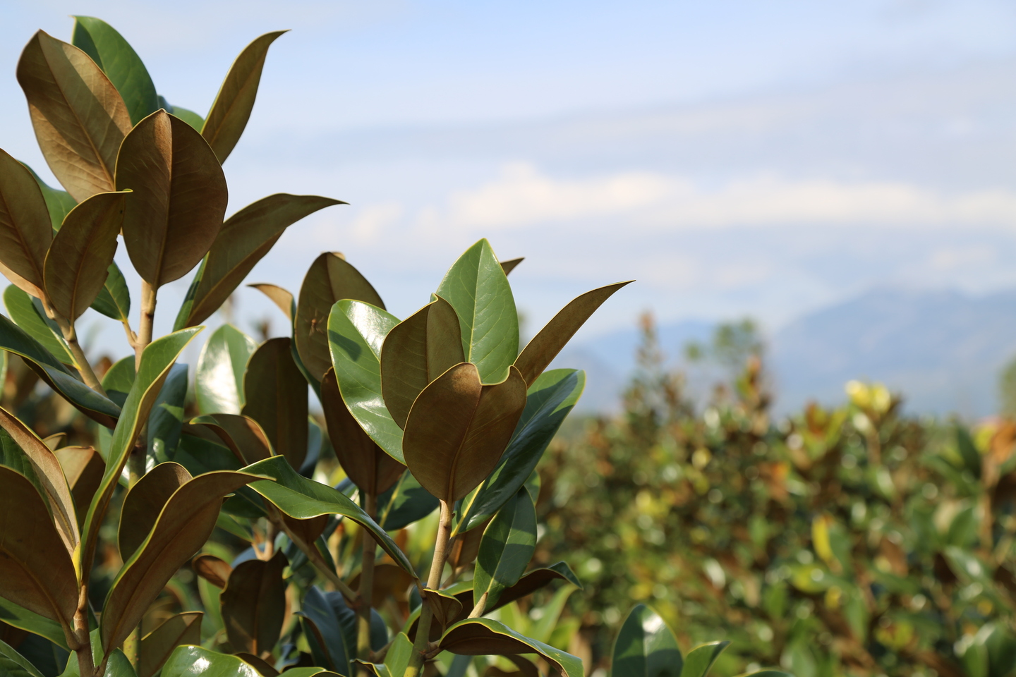 Evergreen Magnolia (Magnolia grandiflora) is a classic ornamental tree with glossy foliage and fragrant white flowers, ideal for gardens and landscape design.